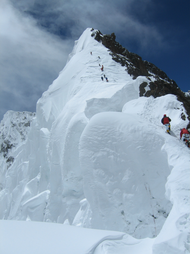 A small rock step bars the way to the false summit slopes ← Previous Next → A small rock step bars the way to the false summit slopes A small rock step bars the way to the false summit slopes