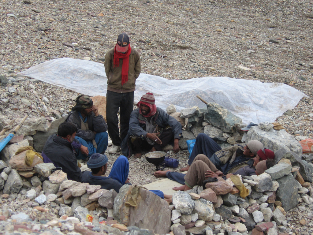 The porters separate into small groups to eat and sleep ← Previous Next → The porters separate into small groups to eat and sleep The porters separate into small groups to eat and sleep