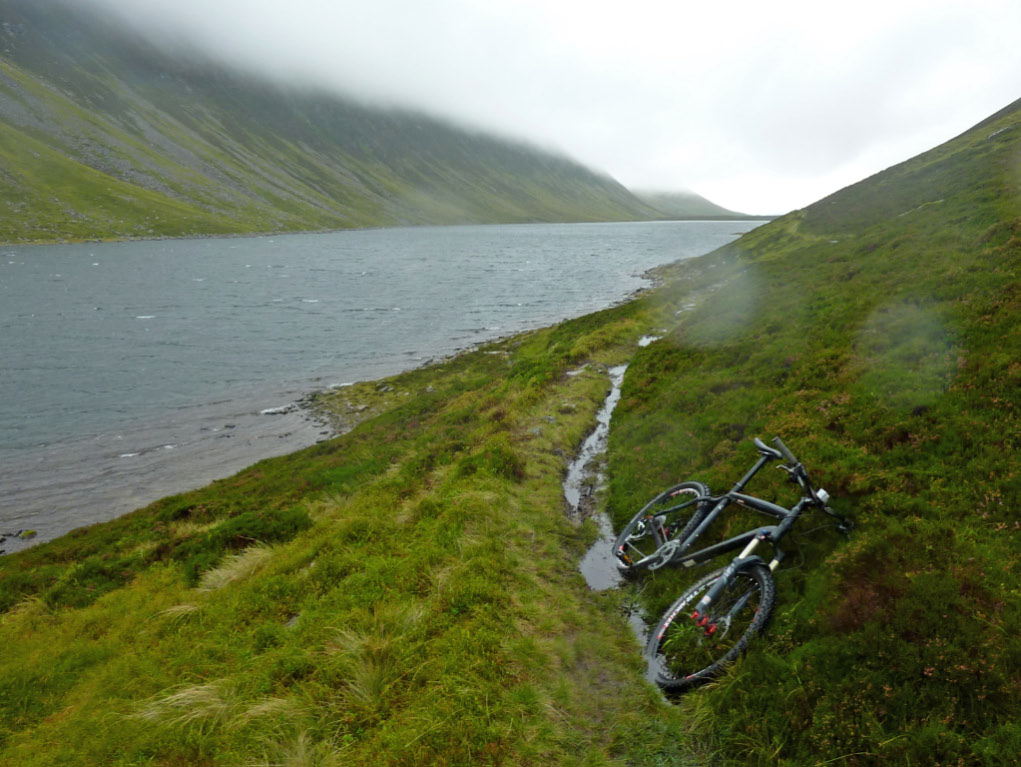 Narrow boggy single track along Loch an Duin