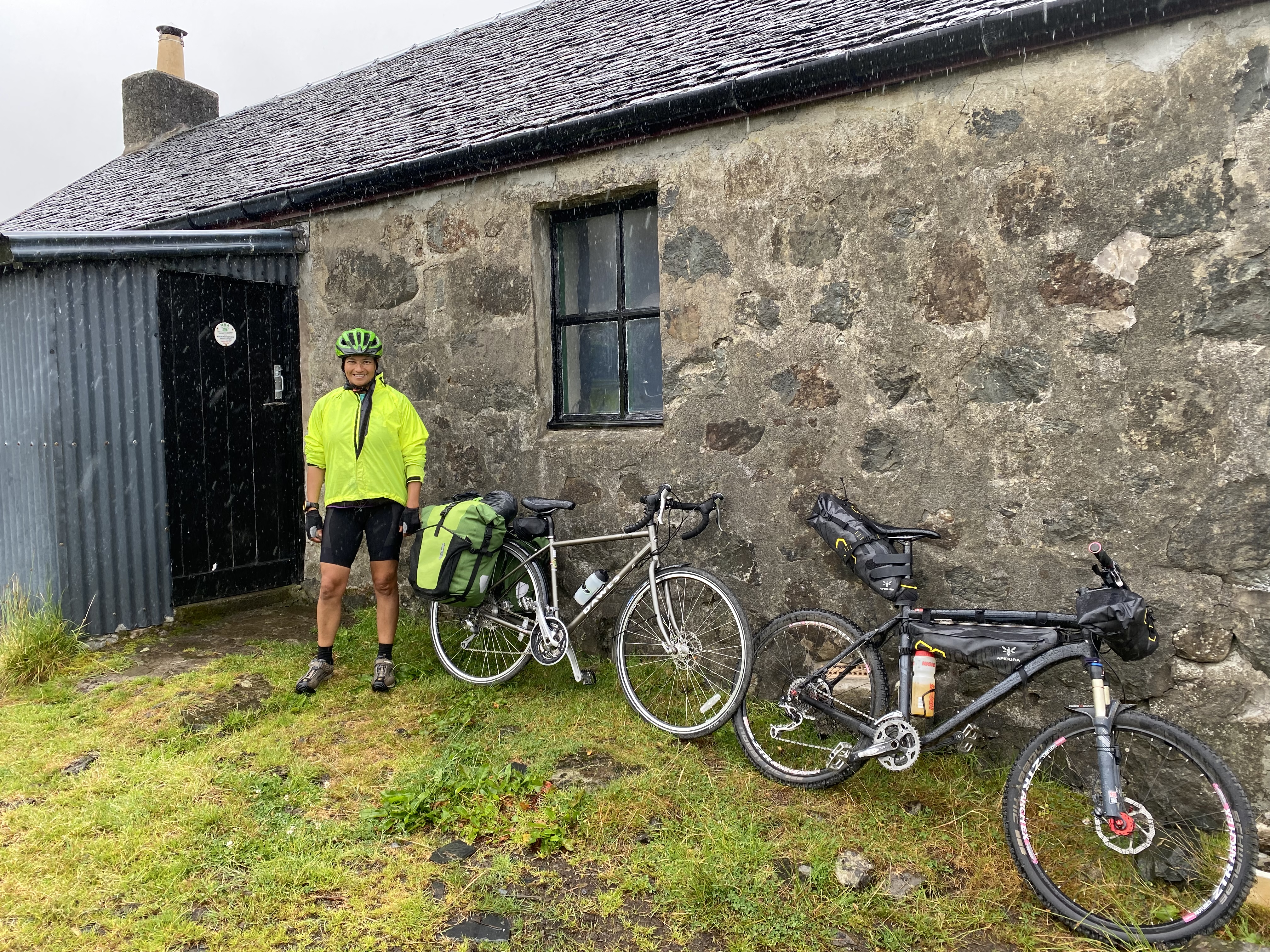284C90FB-BCCC-496C-AFE0-DEDAE400961B ← Previous Next → Setting off in the rain from Tomsleibhe Bothy to cycle the Northern road loop around Mull
