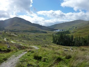 The wide trail heading South-West along Loch Etive has beautiful views but also leg sapping climbs..